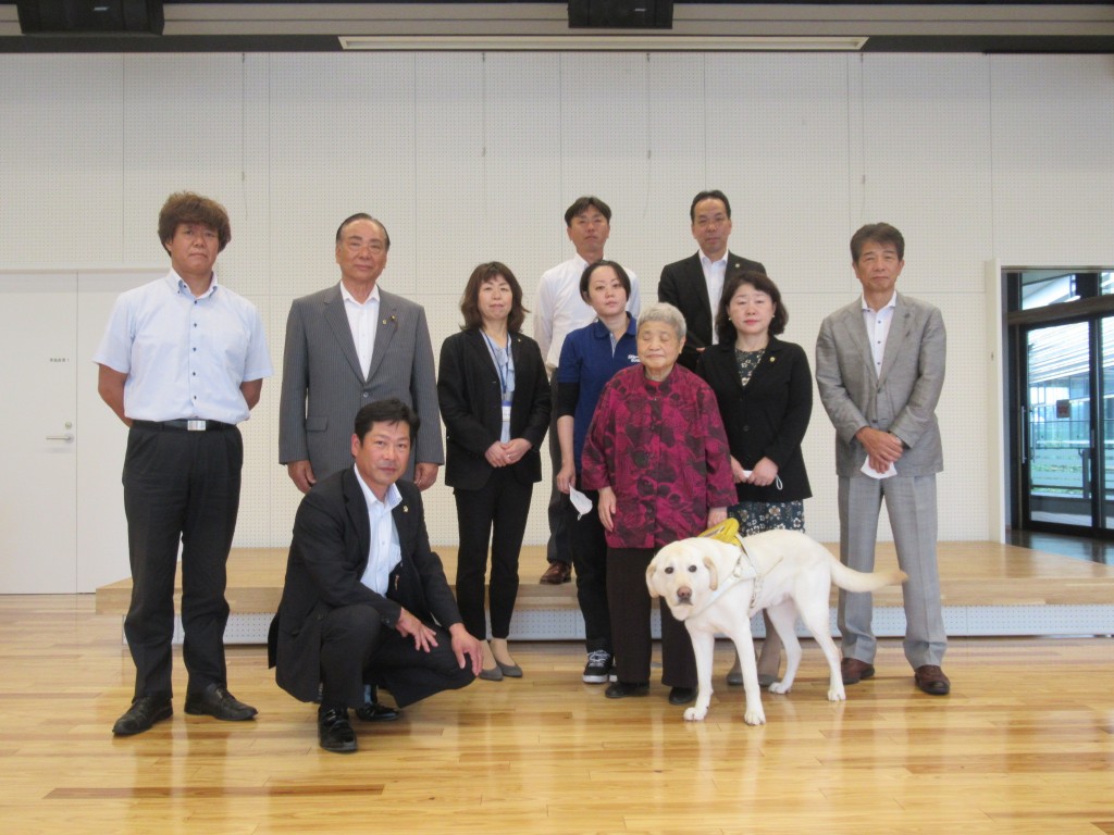 6月25日、鳥取市役所にて鳥取市で唯一盲導犬を支援する会「鳥取ハーネスの会」へ支援金を贈呈いたしました。砂田会長はじめ7名の会員に、「鳥取ハーネスの会」の竹内会長、盲導犬のユーザー森山寿美江様、盲導犬のディーノ君、竹間鳥取市福祉部長にもお集まりいただき開催しました。竹内会長から、会発足時の盲導犬に対する世間の認知の低さから盲導犬にかかる費用負担など支援にあたって御苦労されたお話をお聞きしました。普段見かけることも少ない盲導犬への意識を持つことのできる良い機会となりました。