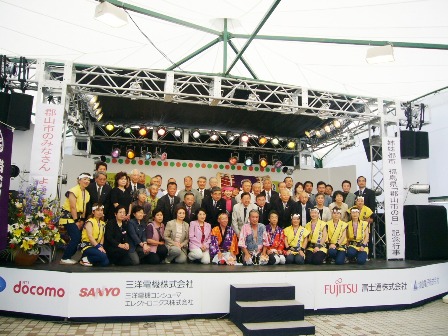 2009鳥取・因幡の祭典のメインイベント世界砂像フェスティバルの期間中に開催された「郡山の日」記念行事に、郡山市4名、郡山鳥取ふるさと訪問団21名、芸能団体7名とともに郡山開成ライオンズクラブ大澤 繁元友好クラブ委員長と岩沢 敏雄元会長が来鳥されました。当クラブからも会長・幹事はじめ5名が行事に参加し、観客に紹介されました。記念行事の中では、力強い岩代國うねめ太鼓や、ユーモラスな高柴の七福神踊りの演技が披露され、市長も一緒になって踊られるなど、観客の目を楽しませてくれるものでした。その夜、モナークにて開催された歓迎夕食会には、クラブから林副市長、松本市議会議員を含め7名が出席し、鳥取、郡山両市長や、民間の交流団体と一緒に親交を深めることとなりました。これに先立つ前日の夜には、当クラブでお二人のための歓迎会を開催し、深夜まで旧交を温め、末永い交流を続けることを誓い合いました。