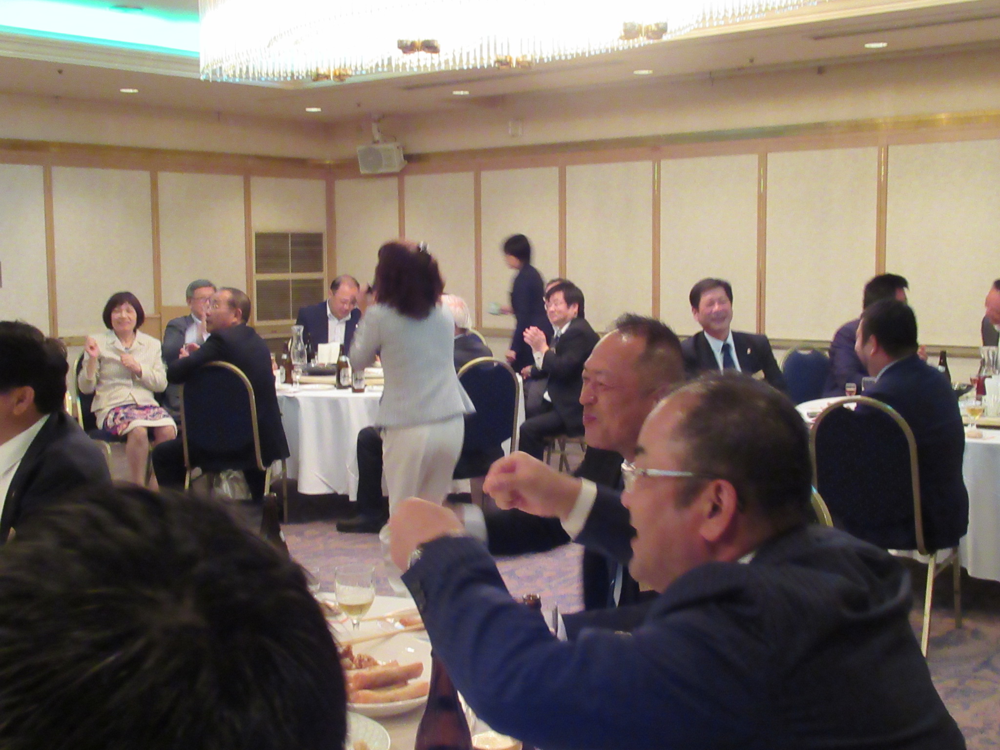 式典は、郡山市長を始めキャビネット関係、姉妹クラブ、他地元クラブから、来賓170名を集めて厳かに開催されました。当クラブからは、田中会長を始めL、LL、ライオネス、事務局と総勢23名が出席、田中会長は、姉妹提携クラブの会長として挨拶。翌日の夕方の歓迎会は、同じく姉妹提携している久留米LCと合同で盛大な歓迎を受けました。その席での挨拶でも田中会長は、先人の苦労をジョークを交えて称えるなど会場は和やかな雰囲気に包まれ、来年度の当クラブ40周年での再会を約束して終了となりました。